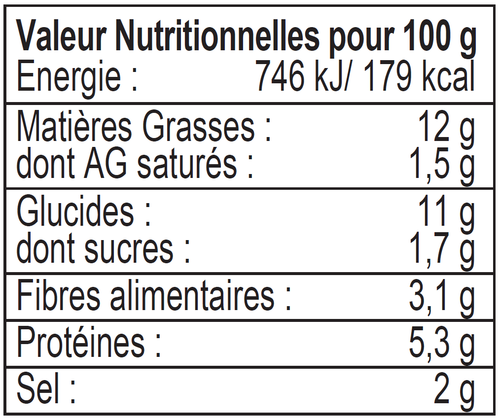 Valeurs nutritionnelles pour 100g - Houmous Rubis de Zilia
